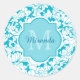 Modern Turquoise Floral Girly Monogram With Name Classic Round Sticker