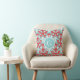 Modern turquoise red ikat tribal pattern monogram cushion