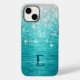 Modern Turquoise Silver faux glitter Monogram Case-Mate iPhone Case