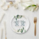 Modern Twin Elephant Greenery Gold Baby Shower Paper Plate