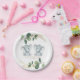 This beautiful paper plate will add a perfect touch to your baby shower. The design features illustration of two adorable elephant babies and soft watercolor greenery adorned with lush golden foliage. If you want to change the font style, color or text placement, simply click the "Customize Further" button.