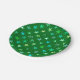Paper plates in a Mid-Century Modern pattern of twinkling stars in shades of lime green, jade, aqua and turquoise, outlined in complementary colours, on a deep emerald green background