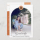 Celebrate the graduate with this modern script graduation invitation featuring an arch shaped photo frame on the front, a second photo on the back room to brag about the grad, too. Class of 20___ also on the front. All Terracotta accent colours easily changed to match your photo or the school colours.