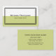 Modern styling highlights this custom business card design in two-tone colour block. Colours include lime green and white with contrasting black text and a double line frame surrounding your text. This versatile design is a wonderful choice for many professions. Personalise the text template on both sides of this card with your details.