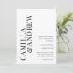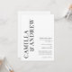 A Modern Typographic Black and White QR code Wedding Invitation with large couples names and details on the front. The back has a QR code with additional details for guests making this a budget friendly all in one option.