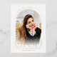 This real gold foil simple minimalist arch graduation announcement features a delicate arch frame, 2 photo templates and elegant modern typography.