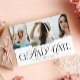 Graduation Announcement with 4 Photo Collage, Modern Script Graduation Announcement, Trendy Cursive and Capital Letter Grad Annoucnement. Announce your big achievement with this stylish graduation card featuring the word “Graduation” in a trendy, elegant font that blends flowing cursive with bold capital letters. This modern typography style is extremely popular for graduation announcements and creates a sophisticated yet fashionable look that stands out. The front of the card includes a beautiful three-photo collage, perfect for showcasing your favorite senior portraits, graduation pictures, or memorable moments from your school years. Beneath the photos, there is space to personalize the design with the graduate’s name, graduation year, and school, creating a meaningful and unique graduation announcement.