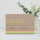 Modern typography and stripes minimalist colourful rustic wedding RSVP response or reply card that features text in a modern large font in coral peach and chartreuse green colours and stripes on cardboard craft look paper. Text in brown. Instead of the word “and” there is the plus symbol in a coral circle. This modern and contemporary customisable wedding template design is part of a wedding set or collection, has a vintage / retro feel to it and is perfect for a casual spring and fall or autumn wedding. Note that there is not real cardboard just PRINTED IMAGES.