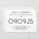 Modern Simple Typography Black and White Wedding. Modern elegance with this fully customisable stylish text only design. Easily personalise the words and, if you have a wedding website, automatically generate a QR code for it on the back by replacing the sample URL to that of the URL of your wedding website. You can delete the sample QR code if not required via the edit further option, where you can also edit text colours and styles and background colours on each side if you so wish.