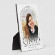 This white and black simple minimalist graduation photo plaque is modern and classy, with a photo of the grad in an arch frame, and elegant modern typography.