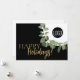 With its modern and stylish design, this flat card showcases a green wreath illustration in gold, green, and white. It adds a touch of elegance and sophistication to your holiday greetings. The words "Happy Holidays" are displayed in a gold colour hue using modern typography, further enhancing the contemporary look of the card.