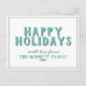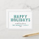 Modern Typography Happy Holidays Christmas Postcard. Turquoise typography is on a white background - customise the family name and the year.