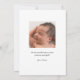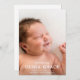 This modern baby birth announcement features a vertical full-frame photo and modern typography. On the back there is another small photo and text for your personal message, both can be deleted if desired. All of the background colors and text colors are completely customizable. Simply edit the template with your details. Simple, chic, and modern!
