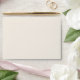 Soft ivory tone envelope with a lightly spaced serif return address on the back flap for a minimal, elegant look.