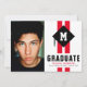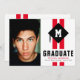 Celebrate the crowning achievement of a new graduate with our noteworthy Modern Guy Graduation Announcement Card. Boasting vivacious red sports stripes and a personal touch with the grad's initial etched in the mortarboard. As the centerpiece, a cherished photo of your scholar. All these elements harmoniously blend, creating an announcement that's not just easy to personalise but also impossible to ignore.
