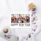 Happy New Year! Send your warm wishes this season with this customisable photo collage New Year postcard. It features simple typography. Personalise by adding your photos, names, year and other details. This gold foil New Year postcard is available in other colours and cardstock.