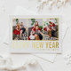 Modern Typography Photo Collage Happy New Year Foil Holiday Postcard