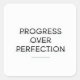 Modern motivational typography design clean white background with words "progress over perfection".