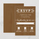Modern typography rustic wood wedding RSVP respone/reply card featuring modern typography design with vintage elements such as a frame on brown wood. This contemporary and trendy yet with retro elements design with some script fonts is fully customisable and is part of a wedding set.