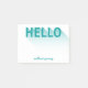 Modern Teal "Hello" with a gradient long shadow against a white background.