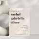 This bat mitzvah invitation features a soft ivory cream background with warm brown typography and a bold name-forward layout that feels modern and timeless. The clear hierarchy makes event details easy to read while keeping the focus on the guest of honor. Personalize the name, date, time, location, and website to match your celebration. A versatile option that works well for temple ceremonies followed by receptions of any size.