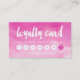 A modern, stylish loyalty card for hair and makeup artist business card with modern hand lettering style brush typography in white on a trendy and elegant bright pink ombre watercolor background.