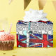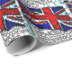 Modern Abstract United Kingdom British Flag Print. Features tons of circles in red white and blue that make up a British Flag or Union Jack. A unique take on this patriotic British print.