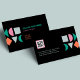 Trendy aesthetic elegant minimal mid century mod inspired colourful abstract geometric shapes wrap around pastel motif black business cards with your QR scanning code to website or portfolio. Suitable for creative professionals - graphic or interior designer, makeup artist, hand-made artisan boutique owner, jeweller, writer, content creator, art teacher, freelancer, or lifestyle blogger.