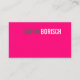 Modern Business Card Template with contemporary big name and last name letters in grey and girly bright pink colours. Under are all the other contact information, with the same grey and bright pink colours. These two colours are switching sides. The background is white. On the back side the background is bright pink with only name and last name, where the last name is written with white. This Professional Profile Card has a very contemporary fresh and clean unique design.