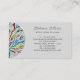 This modern and unique meditation teacher business card is decorated with a colourful mosaic tree of life design and stylish script typography on a grey background.