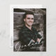 Modern Unique Script Overlay Two Photo Graduation Announcement Postcard
