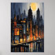 Bring the energy of the city into your home with this stunning Modern Urban Nightscape poster print. AI-generated and inspired by the captivating allure of city life, this artwork features a dynamic skyline illuminated by the warm glow of streetlights and the reflective shimmer of water. The bold contrast of dark skyscrapers and vivid orange lights creates an atmospheric, vibrant city scene perfect for adding an urban touch to any room. The soft glow of the moon casts a surreal, almost dreamlike quality over the city, making this piece a perfect fusion of modern expressionism and classic cityscape art. This city nightscape captures the timeless appeal of metropolitan life, offering a unique perspective on the beauty of cities after dark. Ideal for modern interiors, lofts, or office spaces, this artwork makes a statement with its bold contrasts and rich colour palette. It’s the perfect gift for architecture lovers, city dwellers, or those seeking to add urban sophistication to their decor. Whether for housewarmings, birthdays, or other special occasions, this piece is sure to impress.