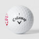 A modern mongram and nametag between red hearts on a golf ball. Love is in the air.