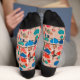 Step into the season of love with these vibrant Valentine’s Day socks featuring playful rows of hand-drawn hearts, dots, and abstract stems in shades of red, blue, teal, and blush on a soft beige background. Personalise your pair with monogrammed initials prominently displayed at the top and bottom of the front for a thoughtful, custom touch. With solid black heel and toe accents adding a polished finish, these socks combine style, and charm—making them the perfect gift or statement piece for spreading Valentine’s Day cheer!