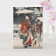 Modern Version of the Tale of Genji in Snow Scene by Ando Hiroshige. Ukiyo-e Japanese Woodblock Art print showing a snowy landscape with a man holding an umbrella. Ando Hiroshige (1797-1858), Japanese painter and printmaker, known especially for his landscape prints. The last great figure of the Ukiyo-e, or popular, school of printmaking, he transmuted everyday landscapes into intimate, lyrical scenes that made him even more successful than his contemporary, Hokusai.
