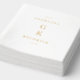 Elegant wedding foil napkins include a modern vertical monogram and personalised bride and groom's names. These custom napkins are perfect for a stylish wedding reception.