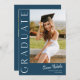 This modern elegant stylish photo graduation invitation features a vertical photo and headline with customisable script name and text on the front. The back has an invitation with party details. A great way to showcase your graduate. Click the edit button to personalise this design.