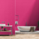 Modern vertical shocking pink striped pattern wallpaper is suitable for any room, including the living room, bathroom, kitchen, bedroom, or nursery. The wallpaper shown is textured vinyl that can be easily peeled and stuck. It comes in a 2' x 12' sheet. You have the option to choose from different styles and sizes.