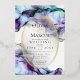 Modern abstract wedding in vibrant colours . Flowing fluid abstract ink swirls appear as intensely coloured smoke or vapour - in hues of ultra violet purple, indigo and teal. Gold frame overlay with translucent smoky fill is where your details are placed. This is a unique abstract design created for the BarefootBride™ by © WhimsicalArtwork™ Customise text, font style, colour and size. We created this template is to make it easy for you to personalise with your own information. This is part of a complete Wedding Stationery Suite with matching wedding, baby shower and other event stationery