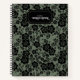 Infuse your daily writing with the mysterious elegance of this modern black and sage green faux lace journal inspired by vintage Victorian stationery. This striking notebook features an intricate, layered black floral lace pattern set against a delicate muted green background. It’s the perfect centerpiece for a dark academia desk setup or a sophisticated stationery collection.