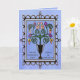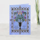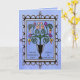 A richly toned periwinkle blue background sets off this original, modern interpretation of a classic Victorian style multi-colour floral bouquet in a vase surrounded by a wrought-iron frame. Inside greeting "I Love You, Mum!" is customisable.