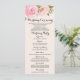 Modern Vintage Floral Wedding Program Card | Romance Garden Wedding Stationery Suite | Elegant light pink wedding program with hand drawn pink roses, pink flowers, pink peonies, purple peonies, beige flowers, dark green leaves and twigs in watercolor hand painted style. Sophisticated handwritten font style, with classic chic typography. Trendy wedding invitation. Some elements by CreateTheCut.com.
