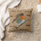 Modern Vintage Robin Bird, faux burlap texture, Script pillow.