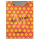 retro vintage yellow orange flowers pattern monogram Clipboard use personalised button to edit text.