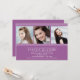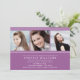 Announce your high school or college graduate in style with a three-photo graduation card with stripe details and modern sans serif invitation wording. Fuchsia orchid / ultra violet purple and white design colours. Customise to add three photos and your graduation announcement and party invitation details.
