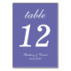A simple wedding table number for a violet wedding colour. It is just white text on a purple background. Everything except the number itself is written in an elegant calligraphic script.