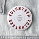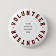 Volunteer Button Pin with custom business/organisation logo.. "Volunteer" in dark red.