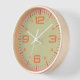 Add a touch of retro charm to your space with this modern wall clock. Featuring a warm beige face accented with bold orange numbers and sleek white hands, this clock combines classic design elements with a contemporary twist. The wooden frame and soft pink inner ring provide a pop of colour, making it perfect for a stylish home or office setting. Easy to read and visually striking, this clock is both functional and decorative, perfect for brightening up any room.