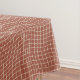 Set a contemporary table with this intriguing Warped Grid table cloth in Terracotta palette, designed for the modern minimalist who loves a touch of the unexpected. This isn't your standard graph. The design features a classic grid pattern that has been gently distorted and "warped," creating a fluid, wave-like effect. It combines the clean structure of geometry with the softness of organic movement. The result is a subtle optical illusion that adds depth and interest to your dining table without overwhelming the eye. Clean, architectural, and effortlessly cool. Because the lines are fine and the pattern is open, it acts as the perfect neutral canvas for your plating. It’s interesting enough to spark conversation but subtle enough to let your food and centerpieces shine.
