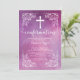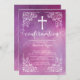 Our beautiful modern confirmation invitation features a vintage scroll frame, a white cross and a chic fancy confirmation font set on a popular purple watercolor background. Flip our confirmation invite over to view a matching back for an extra special touch. Perfect invitation for a girls confirmation or boys confirmation. Visit our shop for this invitation in a large selection of modern & trendy colours.